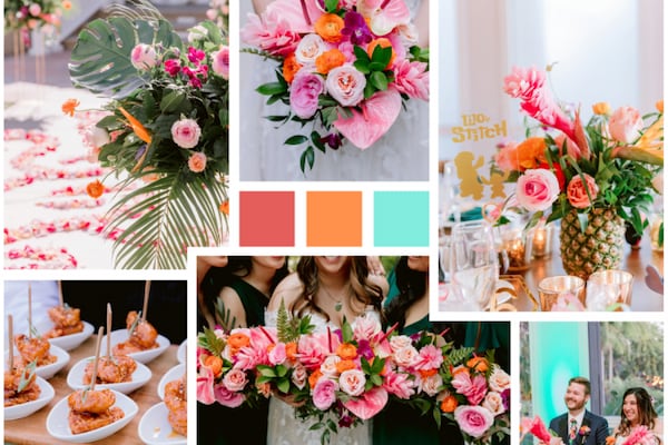 Whether you choose a tropical destination for your wedding or not, you can have all the island sunny feels with bright tones, lots of greenery, and colorful foods.