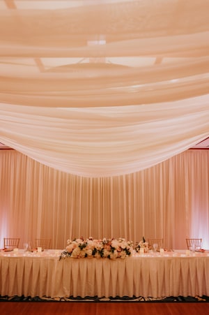 Couples are leaving traditional wedding décor in 2025 and embracing unique and elements such as drapery into their 2026 wedding celebration spaces. From dramatic backdrops to drapery framing the altar, fabric accents are making a big statement in 2026 weddings. Whether cascading from ceilings or creating an overall romantic and elevated atmosphere, draping offers visually striking and unique wedding décor through its elegant texture.