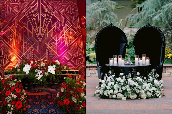 One of our favorite up and coming trends is statement floral that combines both elegant, whimsy, and industrial elements. This trend incorporates unique colors and textures into wedding décor in an unexpected way! Consider playing with floral arrangements of different heights, sizes, and types of flowers to add endless visual interest. Framing your space with this unique floral trend is sure to make for stunning photos and add a whimsical garden vibe to your celebration.