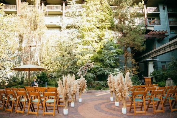 Disney’s Grand Californian Hotel & Spa set the scene for Lindsey and Matt’s bohemian, woodland Disney wedding. The immersive resort, with its craftsman-style elegance and towering trees, matched the couple’s unique wedding vision and brought their love story to life in a way that felt authentic and special to them.