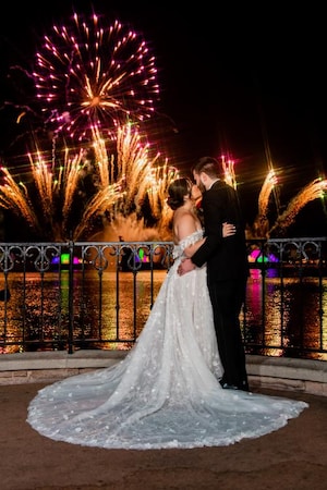 Continuing their celebration as newlyweds, Nadia and Taylor watched EPCOT’s nighttime fireworks spectacular, before heading to their wedding reception at the China Pavilion.