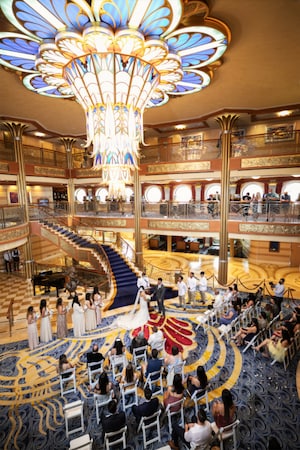 Then it was time for the wedding ceremony! The couple hosted their ceremony inside the Atrium while at port in Nassau. Port days are ideal as it means not as many guests are onboard – giving the couple and their wedding guests more intimacy during the special celebration.