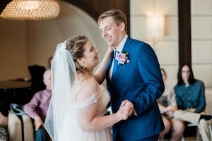 Joining their family and friends at the Outlook, a cozy cocktail space, they had an intimate celebration with a wedding cake, champagne toasts and and a first dance.