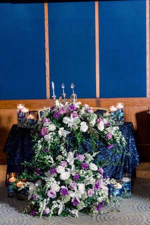 Hosting their Disney Wedding during EPCOT’s Flower and Garden Festival, Italy was already the perfect setting, covered in colorful floral and larger-than-life topiaries. It was a true fairy tale with beautiful ceremony décor in purple hues, with an altar draped in purple silk and custom chairs to match the aesthetic and architecture of the buildings around them. Diana shared that she “remembers feeling so overwhelmed with emotion upon seeing the beauty of their venue, all their loved ones at once and her future husband at the end of the aisle.”