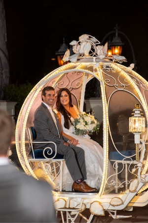 “Our favorite moment of the big day, other than walking down the aisle and actually getting married, was getting into Cinderella's Coach after our "I Dos" and being able to finally breathe. Having the wedding postponed and dealing with the stress of Covid made us believe, at one point, that we wouldn't be able to have the wedding of our dreams, so that moment just meant so much to us. We also hadn't seen each other since the rehearsal dinner the night before, so we were so happy to be able to be alone for a few minutes!”