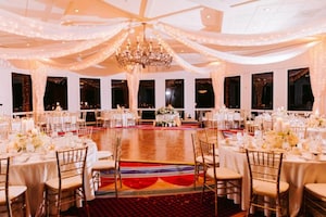 Anna and Scott hosted their wedding ceremony at the Rose Court Garden. The Disney Wedding venue was transformed into a true holiday fairy tale, with stunning floral arrangements adorning the gazebo and aisle, floating candles below and string lights above creating a warm atmosphere. A string quartet brought it all together, adding to the magical ambience.