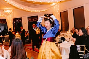 "I would say that our wedding could be described as Disney elegance with a mix of tradition. I am Korean, and in traditional Korean weddings you present a wooden duck to your future in-laws. The ducks that are represented here mate for life so it is a way to show your future family your love, loyalty, and fidelity. That along with my traditional Korean dress (Hanbok), we were able to incorporate my heritage which was important to me."