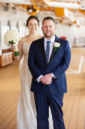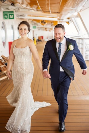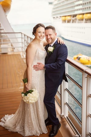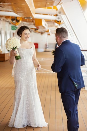 The ceremony was the couple’s favorite part of the day, stating that they were “surrounded by loved ones while other Guests on the ship looked on from the balcony. Though we had so much support and excitement around us, it felt like we were the only two people in the room.”