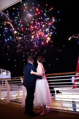 An epic Disney-inspired love story through and through. Meeting while working as Disney Cast Members, Disney has played an integral role in Colleen & Chris' relationship – from yearly anniversary trips to Disneyland Resort to planning a wedding on the Disney Wish to a honeymoon on the Disney Magic.