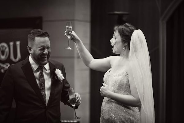 A ceremony in the Grand Hall led to a lively celebration in The Bayou to toast to their marriage.