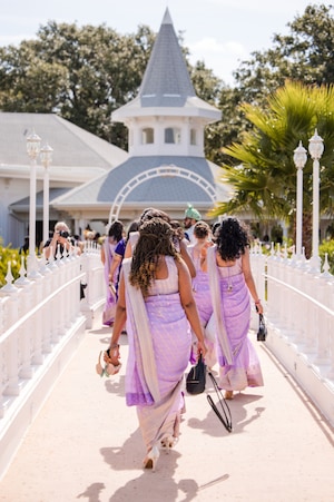 The couple was intentional in making every event feel unique & giving their guests an unforgettable experience – and the Disney Weddings team helped them accomplish this. Each space was outfitted in spectacular decor and allowed their group to gather and celebrate their marriage. From a colorful celebration at Disney’s Wedding Pavilion to a starry night-inspired reception at Disney’s Grand Floridian Resort & Spa, the couple’s guests understood the assignment & dressed to the nines to match the theme of each event.