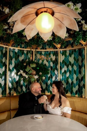 In addition to these facts, Jeannette & Luis knew wedding aboard a Disney cruise ship would be a memorable and fun way to celebrate, especially with it being the couple’s first ever Disney cruise. Jeanette and Luis invited 40 of their friends and family members for their festivities. They chose the Disney Wish as Jeanette had fallen “in love with the fairy tale castle inspired Grand Hall,” especially with the charm of the holiday decorations, and Luis had “loved the New Orleans inspired aspect of the Bayou.”