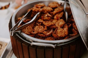 Curated wedding menus, another 2023 wedding trend, is a way for couples to get creative and personalize their wedding foods. Mia shared that “food is something guests tend to remember at weddings and we wanted to make sure all of the food we had was delicious and memorable. Attending the group menu tasting at Walt Disney World a few months prior to the wedding was such a fun experience! Disney has an AMAZING culinary team and all of the food was wonderful.”