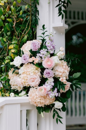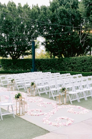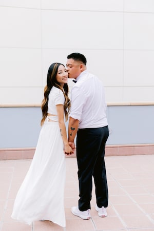 The backdrop of their special day took place at Rose Court Garden. To set the scene for their Tangled inspired day, the couple lined the aisle with beautiful golden lanterns and swirls of pink and white rose petals. String lights twinkled above guests as the wedding began. Grace’s bouquet tied it all together, with light pink, lavender, and white roses to match. Walking down the aisle was one of the couple’s favorite moments. Grace and Joesh described it as being “emotional and beautiful” and stated that “seeing all of our friends and family supporting our relationship since the beginning was so special to us.”
