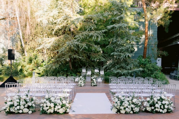 The couple had a stunning ceremony in Brisa Courtyard at Disney’s Grand Californian Resort & Spa. Emma, who grew up going on yearly family vacations to Disneyland Resort, has fond memories of staying at Disney’s Grand Californian Resort & Spa with her family over the years, so she wanted to incorporate this nostalgia of the resort into her big day.