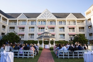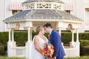 Situated along Disney’s BoardWalk, Disney’s Yacht Club Gazebo was the perfect backdrop for Ashleigh and Hal’s wedding ceremony. Pairing the couple’s “love for the resort and our New England Roots.”