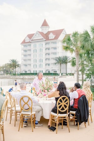 “We had a stunning view of The Grand Floridian, Seven Seas Lagoon, and at the end of the night we could see fireworks from our dance floor! Mickey & Minnie surprised our guests and joined them on the dance floor. Seeing our guests’ reactions to Mickey and Minnie was another favorite! The kids went running to them and even the adults followed behind. They danced with our guests and took so many photos. Seeing everyone’s selfies with them made us so happy we had them come!”