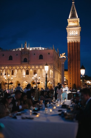 Once Elaine & Wilson were wed, their friends and family sent the couple on their way with an iconic petal toss exit. Afterwards, everyone met inside of EPCOT where they had a delicious dinner reception at Italy Isola.