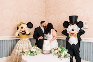 As a surprise and delight moment for their wedding guests, Lena and Chris invited Mickey and Minnie Mouse to visit their reception—joining the guests on the dance floor and for a few photo worthy wedding-day moments.