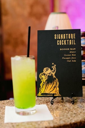 Even their wedding food and cocktails had Haunted Mansion Holiday touches, with Madam Leoda desserts and an Oogie Boogie signature cocktail.