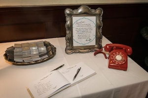 The couple even had a caricature of the two of them on display at their wedding reception to match the many famous caricatures lining the walls of the restaurant.