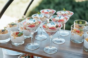 Passed hors d'oeuvres and fun food choices are options that couples have when selecting their wedding day menus. Couples can choose from a variety of items to fit their palette such as chili filled bread bowls, or our crowd-pleasing cheeseburger eggrolls. Grazing tables and buffets are also options where couples can offer guests a variety of bites ranging anywhere from scrumptious charcuterie to Hibachi bars and even Mickey pretzels.