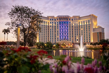 Transport your guests and engage their senses to create an unforgettable wedding experience. Start with your venue—Brooke and Jared chose Spaceship Earth as the setting for their ceremony, this iconic celestial environment was a perfect match for their wedding theme. Their décor found inspiration from the night sky with soft velvet ottomans, a dancing star-studded aisle runner, floral dyed to match the galactic color scheme, fog effects, live music and an epic sparkler moment—all contributed to creating an environment that helped guests stay present and immersed in the moment.