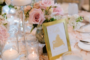 Following the breathtaking ceremony, the couple joined their guests at Disneyland Hotel’s Sleeping Beauty Pavilion where their princess inspired wedding festivities continued. It was a true vision - the space canopied in sheer drapery covered in fairy lights with a gold chandelier in the center. It was all about the details, with table linens covered in pink embroidery, gold Chiavari chairs, floating candle centerpieces, and a Cinderella-inspired wedding cake. Even the table names were Princess-inspired, marked by different Disney love stories - from Mickey and Minnie Mouse to Aladdin and Jasmine, and more.