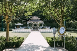 Kimberly arrived in Cinderella’s Crystal Coach in true princess fashion, where the Rose Court Garden was transformed into a true “secret garden” full of pink and white roses and a white petal toss. Just like Kit’s Secret Garden from the live action Cinderella, Kimberly and Dominic’s wedding ceremony surrounded them in vines and lush pink floral.