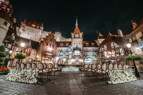 The Germany Courtyard at EPCOT provides an immersive getaway in the heart of Walt Disney World Resort for your early morning nuptials. This whimsical cobblestone venue lined by quaint shops transports your guests to a village from the pages of a fairy tale inspired by architectural styles from northern Germany, Bavaria, the Rhineland and Black Forest. Set the scene with beautiful floral to center your guests into the ceremony and tie the knot against this iconic backdrop.