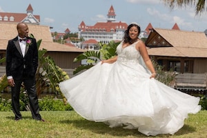 Sara & Jabaar’s love story began at Disney’s Animal Kingdom Theme Park when the two met at Nomad Lounge. They fell in love quickly and Disney continued to play a significant role in their love story, from their first date at The BOATHOUSE Restaurant in Disney Springs, where they later celebrated their engagement, to their magical Disney’s Fairy Tale Wedding.