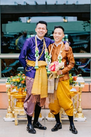 The couple got ready together at Disney’s Grand Californian Hotel & Spa, dressing in traditional Thai outfits and sharing a special moment to themselves before joining their guests for the wedding ceremony.