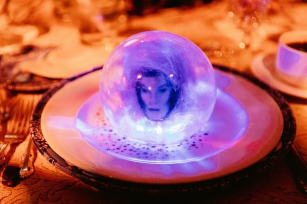 Give your Disney Wedding a dark and moody feel with lanterns, floating candles, and floral in purple hues. Ride into your wedding ceremony in style on a black horse-drawn vis-à-vis carriage. For an extra spooky atmosphere, consider dark antique table settings, cobwebs, and eerie projections.