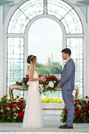 These high school sweethearts with a love for the Disney Parks tied the knot 20 years ago, and when they were planning their vow renewal, knew they “wanted to do it right this time.” Steve shared “Caroline's family has always made visiting [Walt Disney World] a priority. She introduced me to [Walt Disney World] in 2003 and I never looked back.” As a welcome to their guests, the night before the ceremony, they enjoyed Luminous: The Symphony of Us at EPCOT during a dessert party.
