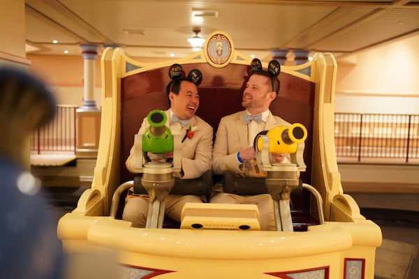 After dinner and cake, the couple continued to surprise their guests with “a special VIP viewing of World of Color followed by a private dessert party in Pixar Pier.” Joseph & AJ also included an attraction mix-in at Toy Story Midway Mania for their guests to experience, sparking some friendly competition of seeing who could achieve the highest score.