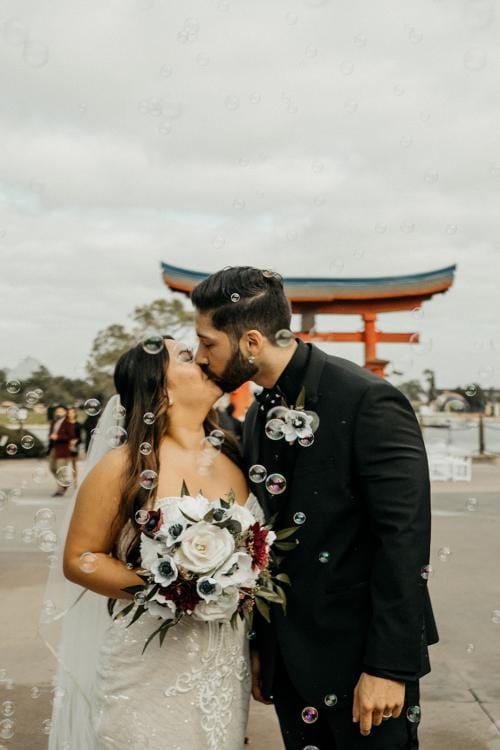 Kaitlyn and Christian chose the Japan Pavilion at EPCOT for their wedding ceremony. Not only is it a stunning backdrop it also held significance for the couple. “We picked the Bonsai Promenade because we both come from a Japanese background, Chris is a whole 1/8 Japanese but my mother is Japanese and we love our cultural background and love the Japan Pavilion for its aesthetic (I honestly think it’s the prettiest of all the countries).”